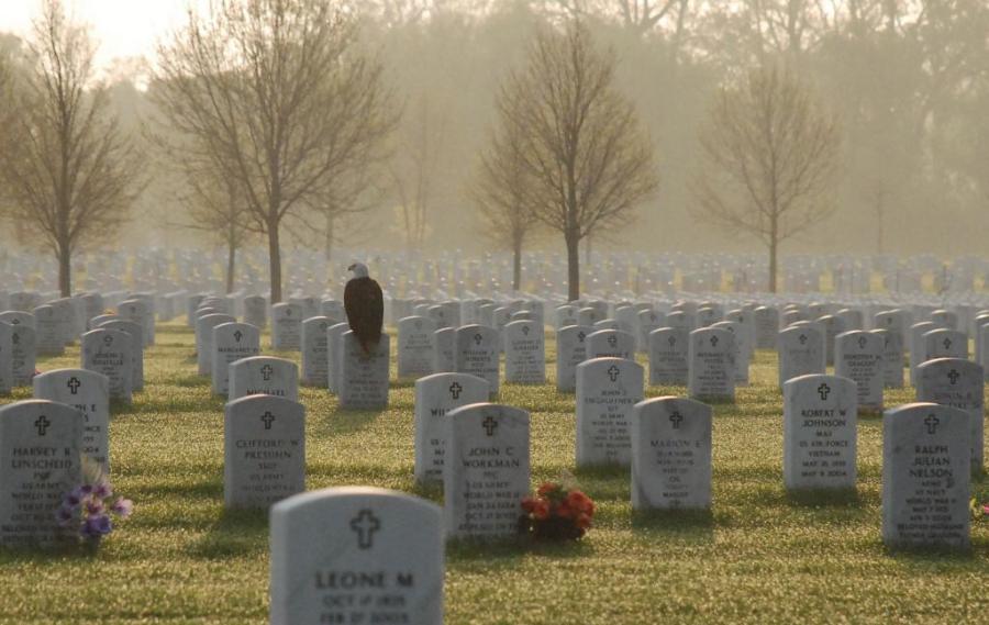 He didn't think too much about the photo, until he showed it to a co-worker, Tom Ryan, who e-mailed it to his brother, Paul. Paul wondered whether a relative of the soldier might want a copy. The tail of the eagle partially covered the man's name, but Paul did some research and looked up the soldier's name in newspaper obituaries. The eagle had landed on the grave of Sgt. Maurice Ruch, who had been a member of the St. Anthony Kiwanis Club, the obituary said.